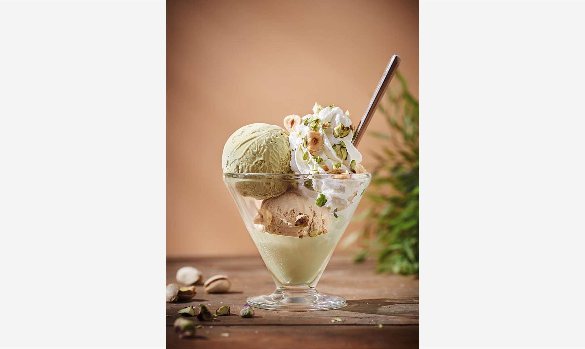Schep de 2 bollen Carte d'Or ijs in een mooi glas